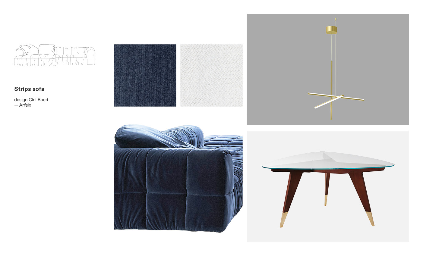 Here for you are our three proposals of customized Arflex sofas, creating a balanced furniture composition through an accurate choice of materials, colors and textures of the finishes and estimating the price positioning of each product.