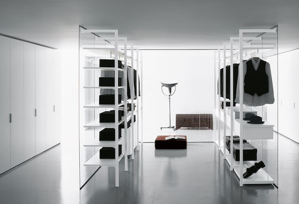 Rationality and functionality are the two words that best describe Porro's modular walk in closet. It is an innovative system designed by Piero Lissoni able to contain and at the same time show the objects stored in a completely elegant way.