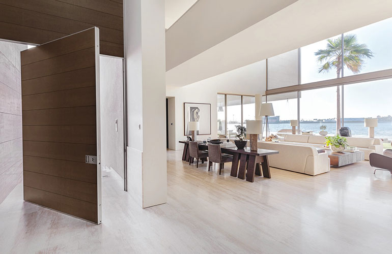 The flagship products of the brand are the flush-fitting doors, characterized by a lack of external finishes that conform to any architectural structure. The hinged door Rasomuro 55s and Compass 55, a pivot door that can totally transform the living space, are two examples.