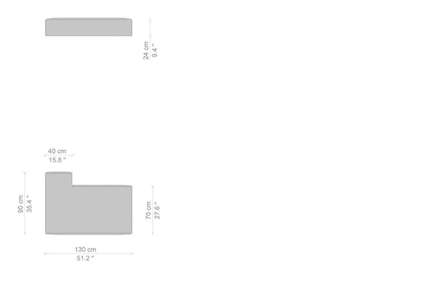 Cassina's Mex-Hi Sofa has five linear measurements for the basic version of this sofa system. These dimensions are: 90x180x72 cm, 90x220x72 cm, 09x250x72 cm, 90x270x72 cm, and 90x310x72 cm. Other configurations are also available for the Mex-Hi. These other variants fit within bigger domestic settings but are more suited for larger venues such as hotel lobbies or reception areas of buildings. These configurations can consist of any component within the Mex-Hi range, and any information regarding the sizes and modules available for this sofa system will be available upon request.