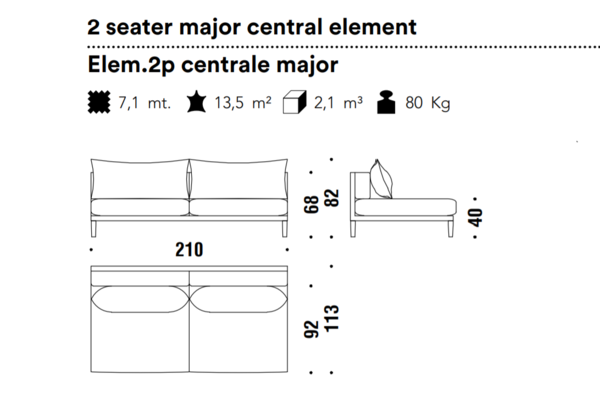 Three sizes are available for the linear version of the Moroso Josh Sofa: 113x190x82 cm, 113x220x82 cm, and 113x280x82 cm. These dimensions are applicable for regular-sized living rooms. The Josh can also occupy larger areas such as hotel lobbies or waiting areas of international offices, thanks to its modular versions. The measurements for the modular versions will depend on your selected components: in this regard, the information required for your configuration will be available upon request. You may also opt for a pouf in the same line, measuring 105x105x40 cm or 130x130x40 cm.