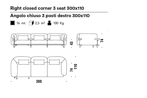 Moroso's Belt Sofa can inhabit any environment that you have in mind, regardless of its location. This sofa system comes optimally sized so that you may utilize it in any setting. The smallest, two-seater version of the linear version of this seating implement measures 110x210x74 cm, while the largest three-seater comes in at 110x300x74 cm. Modular variants of the Belt are also available: you simply have to select the components that you require to complete your ideal version of the Belt. With this in mind, the information for your chosen configuration will be available upon request.