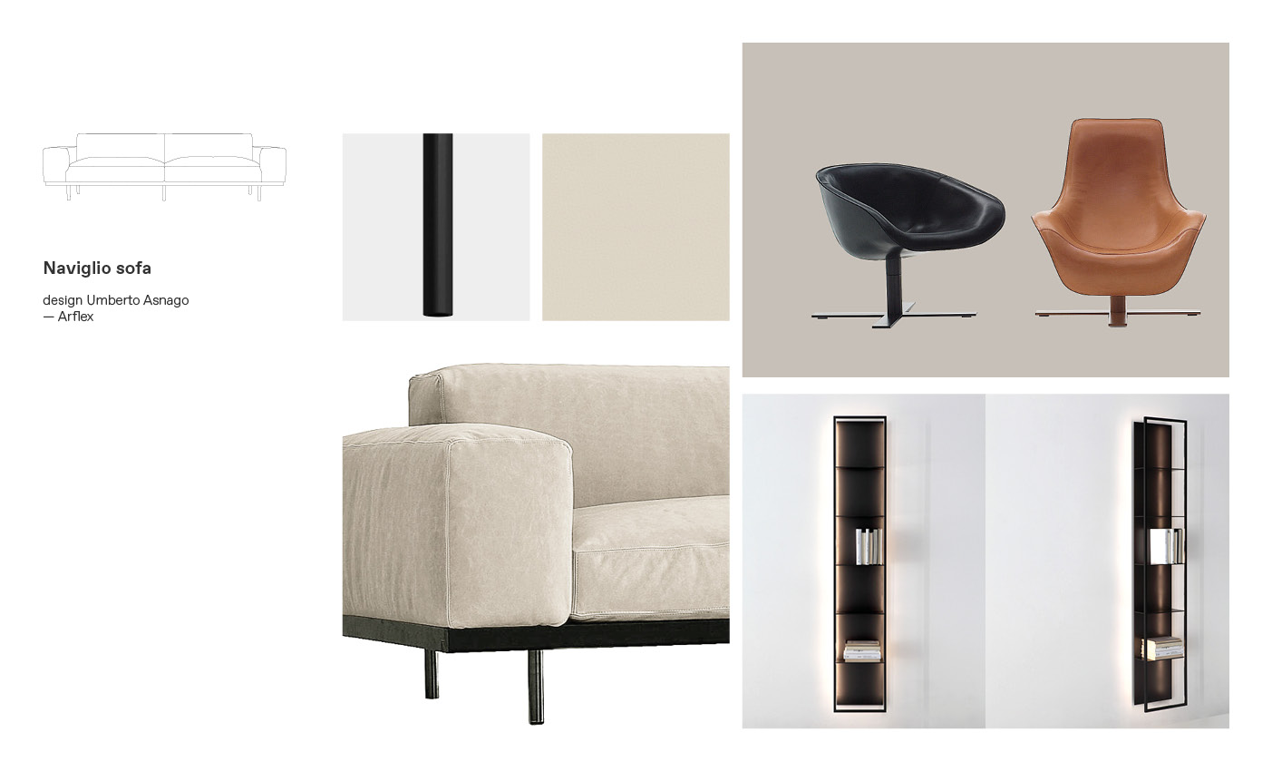 Here for you are our three proposals of customized Arflex sofas, creating a balanced furniture composition through an accurate choice of materials, colors and textures of the finishes and estimating the price positioning of each product.
