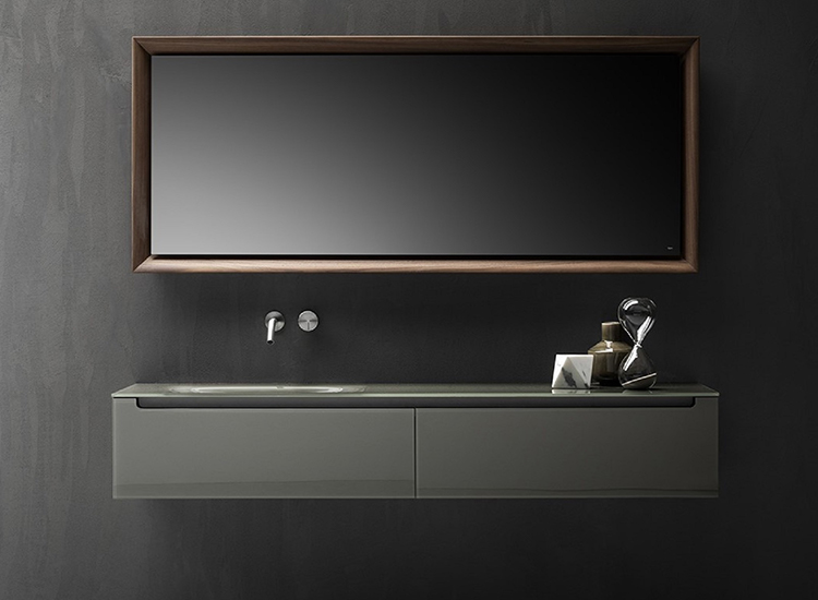 The Falper Edge Glass Bathroom Vanity system deftly employs its symmetrical silhouette to complement any washroom setting it's located in. It has six widths in 80, 100, 120, 140, 160, and 180 cm, two heights in 30 and 45 cm, and a standard depth of 45 cm. With its exquisite profile, the Edge Glass easily elevates the visual appeal of any washroom within your home or elsewhere. The pristine image of its glass cabinets will undoubtedly catch anyone's attention as its sleek appearance can easily gain your appreciation.