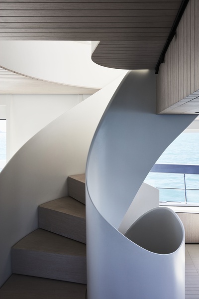 The design features a seamless flow between indoor and outdoor spaces, emphasising the unique layout of the yacht.