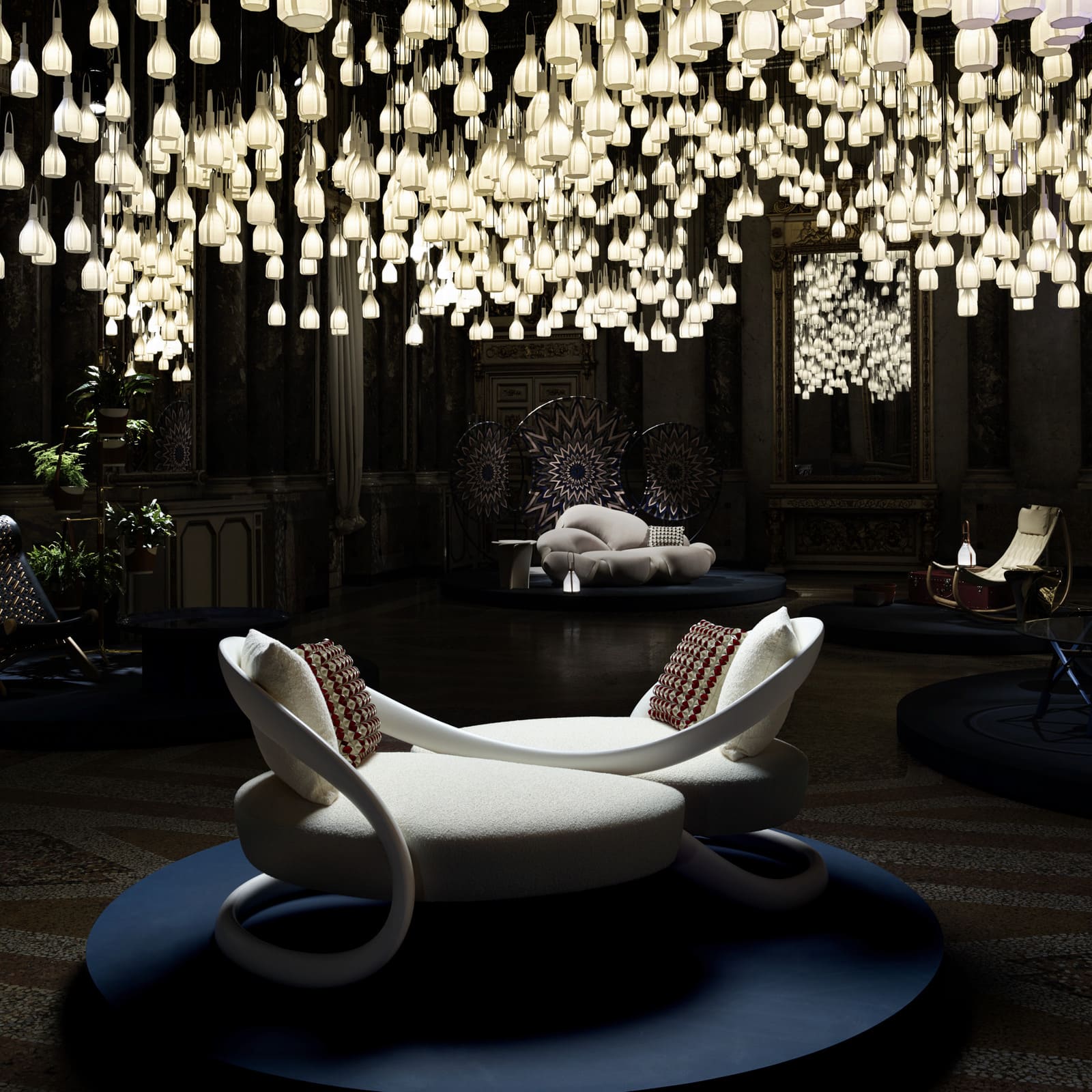 Louis Vuitton presented Objets Nomades at Palazzo Serbelloni. Each year since 2012, the luxury brand has called on both established and emerging designers to add to their Objets Nomades collection. This travel-inspired collection now includes 45 pieces. The cast of designers this year includes: Gabriel Chiave from Marcel Wanders and Marcel Wanders, Alberto Biagetti and Laura Baldassari from Atelier Biagetti, Giorgia Zanellato and Daniele Bortotto from Zanellato/ Bortotto, India Mahdavi, Humberto Campana, Shay Alkalay and Yael Mer from Raw Edges, Aurel Aebi, Armand Louis and Patrick Reymond from Atelier Oï.