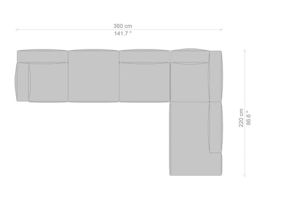 Cassina's Mex-Hi Sofa has five linear measurements for the basic version of this sofa system. These dimensions are: 90x180x72 cm, 90x220x72 cm, 09x250x72 cm, 90x270x72 cm, and 90x310x72 cm. Other configurations are also available for the Mex-Hi. These other variants fit within bigger domestic settings but are more suited for larger venues such as hotel lobbies or reception areas of buildings. These configurations can consist of any component within the Mex-Hi range, and any information regarding the sizes and modules available for this sofa system will be available upon request.