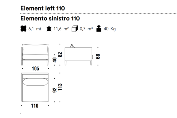 Three sizes are available for the linear version of the Moroso Josh Sofa: 113x190x82 cm, 113x220x82 cm, and 113x280x82 cm. These dimensions are applicable for regular-sized living rooms. The Josh can also occupy larger areas such as hotel lobbies or waiting areas of international offices, thanks to its modular versions. The measurements for the modular versions will depend on your selected components: in this regard, the information required for your configuration will be available upon request. You may also opt for a pouf in the same line, measuring 105x105x40 cm or 130x130x40 cm.