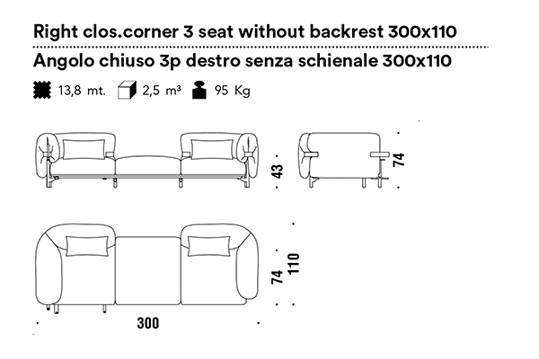 Moroso's Belt Sofa can inhabit any environment that you have in mind, regardless of its location. This sofa system comes optimally sized so that you may utilize it in any setting. The smallest, two-seater version of the linear version of this seating implement measures 110x210x74 cm, while the largest three-seater comes in at 110x300x74 cm. Modular variants of the Belt are also available: you simply have to select the components that you require to complete your ideal version of the Belt. With this in mind, the information for your chosen configuration will be available upon request.